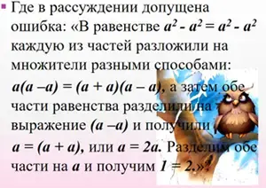 2. Найдите ошибку в доказательстве 1 = 2. (Слайд №7)