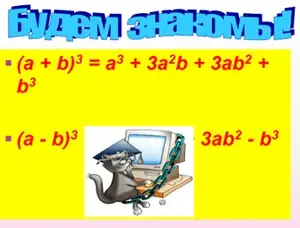 3. Знакомство с новыми формулами сокращённого умножения. (Слайд № 8)