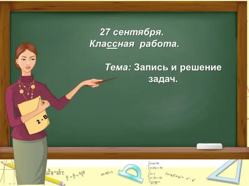 Например: «Портниха купила 10 м ткани на костюм и платье. На платье она израсходовала 2м. Сколько метров ткани пошло на костюм, если у неё осталось 3 м?»