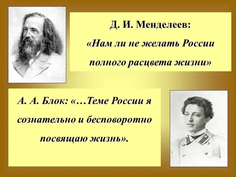 Внеклассное мероприятие "Д.И.Менделеев и А.А.Блок. Заветные мысли о России"