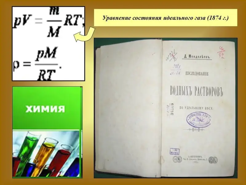 6) Уникальна работа Д.И.Менделеева по созданию уравнения состояния идеального газа (1874 г.). В этой работе он использовал метод систематизации и обобщения знаний по пневмохимии. Закон не потерял своей актуальности и сегодня, используется для расчетов вакуумных аппаратов, рентгеновских телевизионных трубок, для производства сверхпрочных материалов, материалов особой чистоты. Слайд 18.