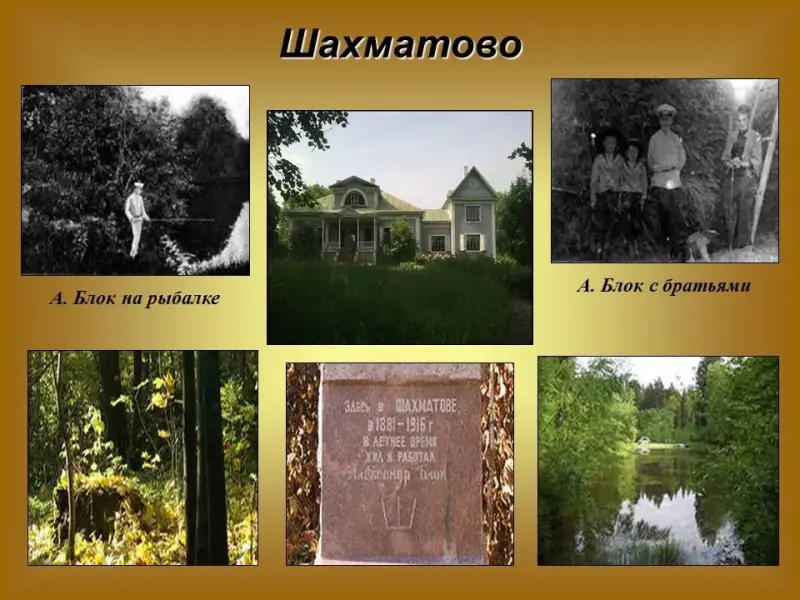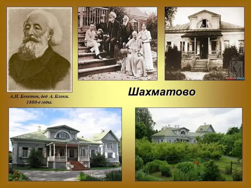 Ученик. Блок познакомился с ней в 1898 г. в имении Менделеева Боблово. Слайд 21. Неподалеку располагалось и имение деда Блока Андрея Николаевича Бекетова - Шахматово. Слайд 22. В жизни Блока Шахматово сыграло исключительную роль.