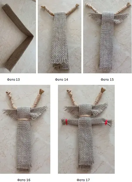 16. Красной нитью закрепить ножки, намотав обережный крест. (фото 18)