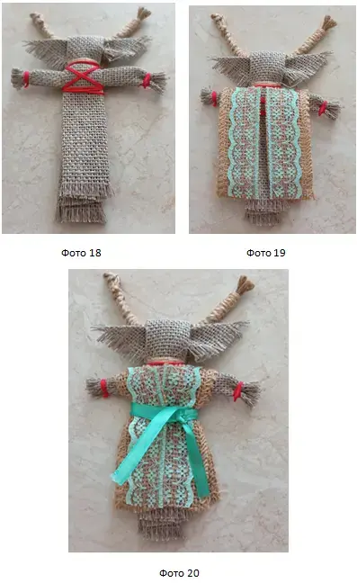 14. Перевязать льняной нитью, обозначив голову и шею козы. (фото16)
