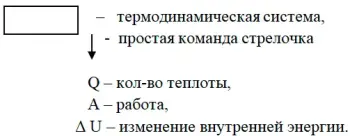 (Отдал Q стрелка вверх от системы, совершил работу, стрелка от системы)