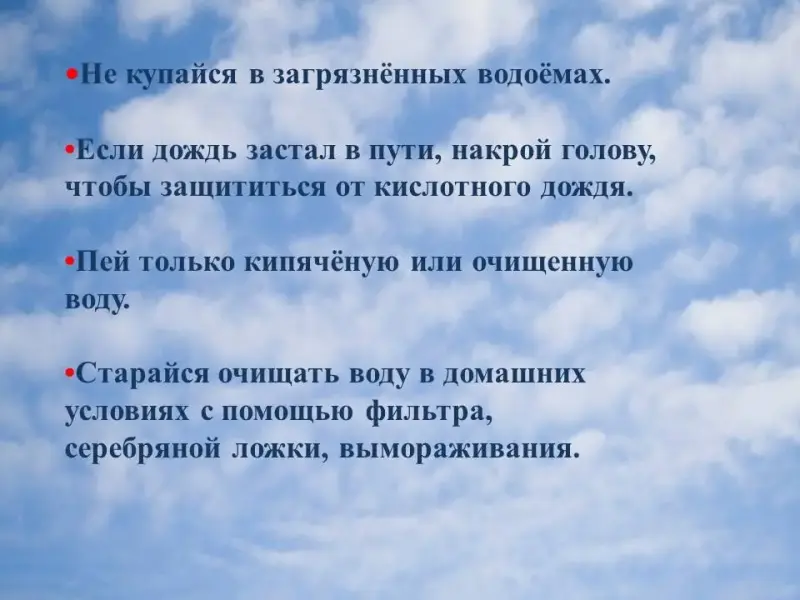- Если дождь застал в пути, накрой голову, чтобы защититься от кислотного дождя.