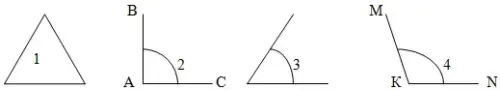 1. Рассмотрите рисунок и назовите виды углов. Сравните их по величине.