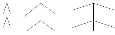 1. Под каким углом относительно ствола расположены ветви у нарисованных елок?