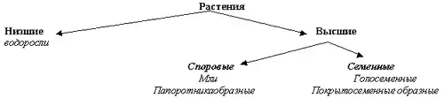 | Водоросли | Низшие растения, которые состоят из клеток, не имеют органов |