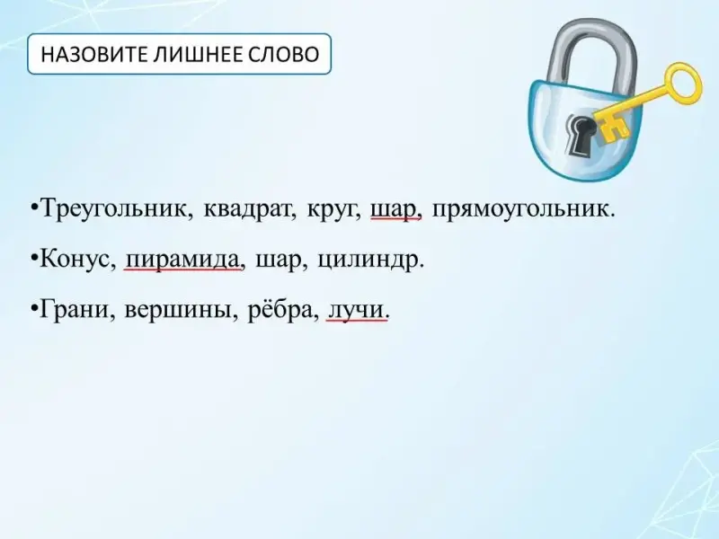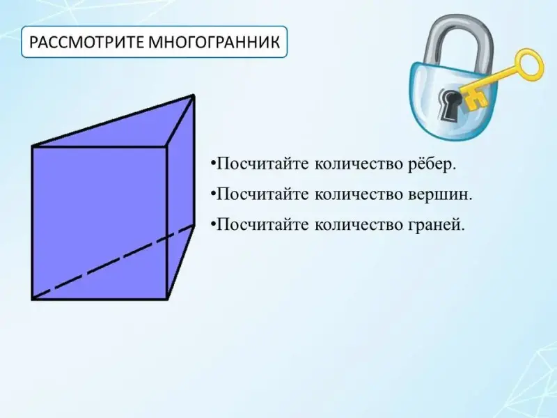 - Да я вижу, вы уже специалисты в области многогранников! Ключ подобран!