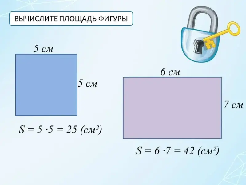 3. Вычислите площадь прямоугольника и площадь квадрата.