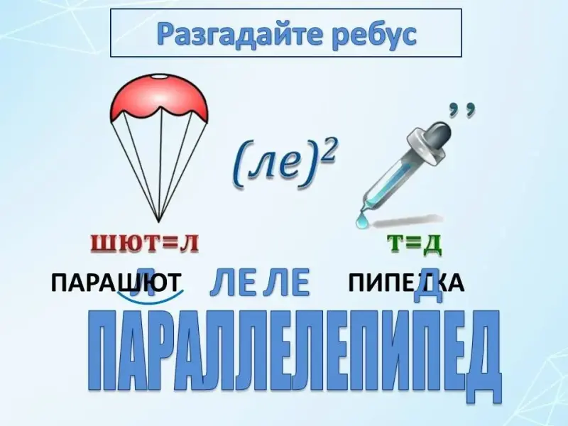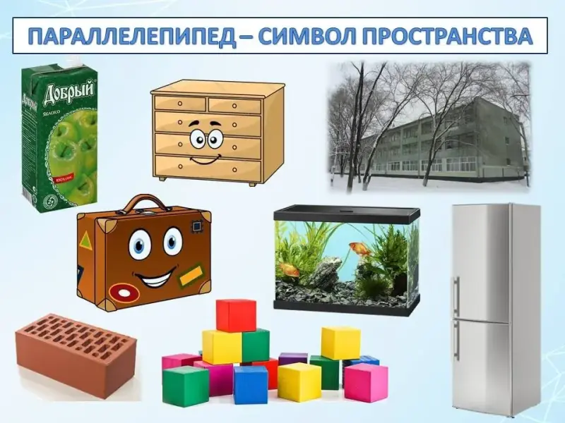 - Посмотрите, какое количество предметов, имеющих форму параллелепипеда, вы назвали! Не даром параллелепипед считают символом нашего пространства!