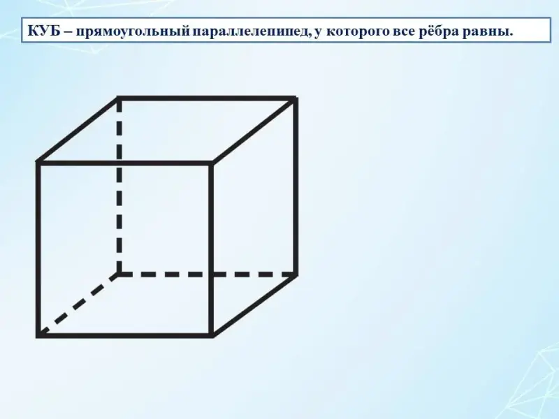 - Любой ли прямоугольный параллелепипед является кубом? (нет, у которого равны измерения)