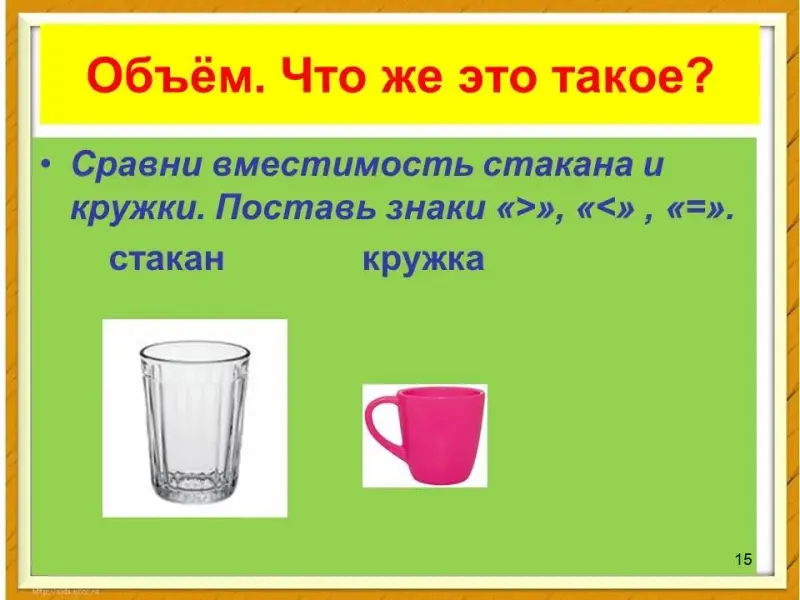 Урок математики в 1-м классе по теме «Объём. Литр"