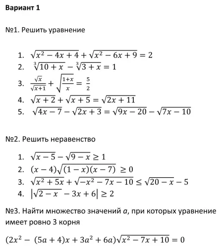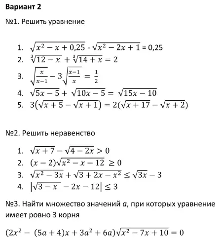 Контрольная работа по теме "Иррациональные уравнения и неравенства" (профильный уровень)