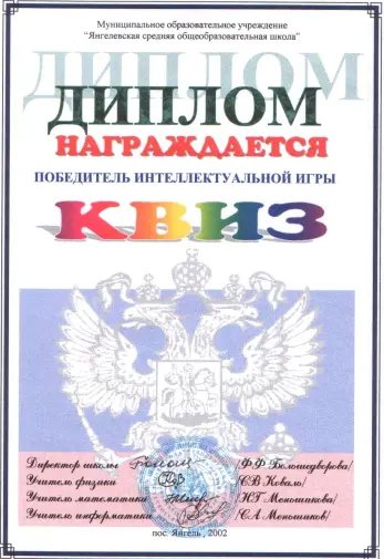 В нашей школе уже более 10 лет подряд в дни декады точных наук проводится вечер-игра «КВИЗ». Начиналась она как игра «Что? Где? Когда?». В дальнейшем она трансформировалась. В ней заложены многие игры, которые мы с удовольствием смотрим по телевизору: «Брейн-ринг», «Счастливый случай», «КВН» и др.
