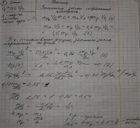 А5. После упругого лобового соударения с неподвижным ядром протон отлетел назад со скоростью, составляющей 60% от начальной. С каким ядром он столкнулся?