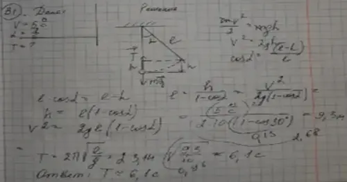 В1. Материальная точка, подвешенная на невесомой нерастяжимой нити начинает движение из положения равновесия со скоростью 5 м/с, направленной горизонтально. В процессе колебательного
