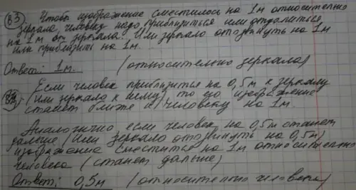 В3. Человек видит свое изображение в плоском зеркале. На какое расстояние нужно передвинуть зеркало, чтобы изображение сместилось на 1 м?