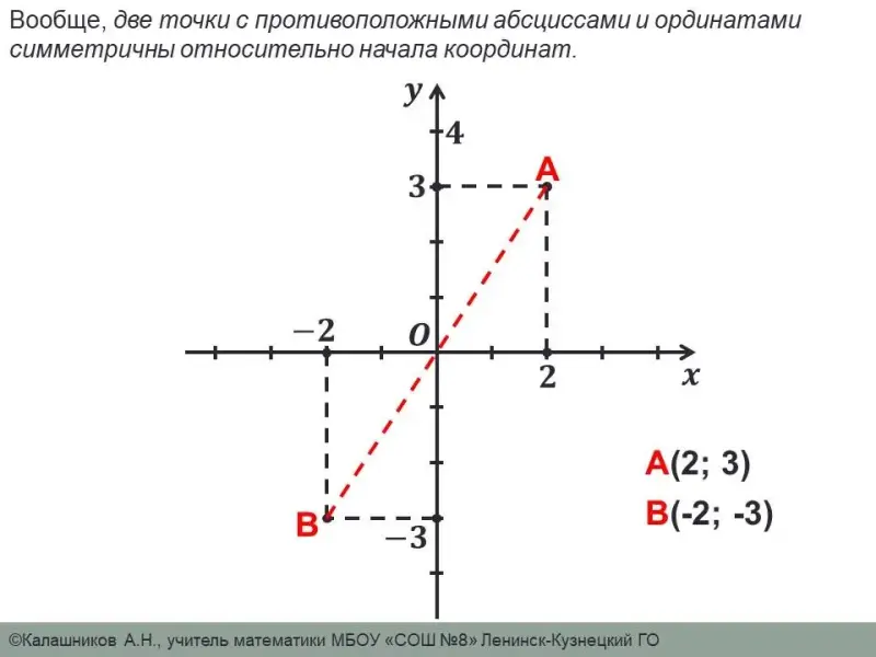 - Что можно сказать о точках, имеющих противоположные абсциссы и противоположные ординаты?