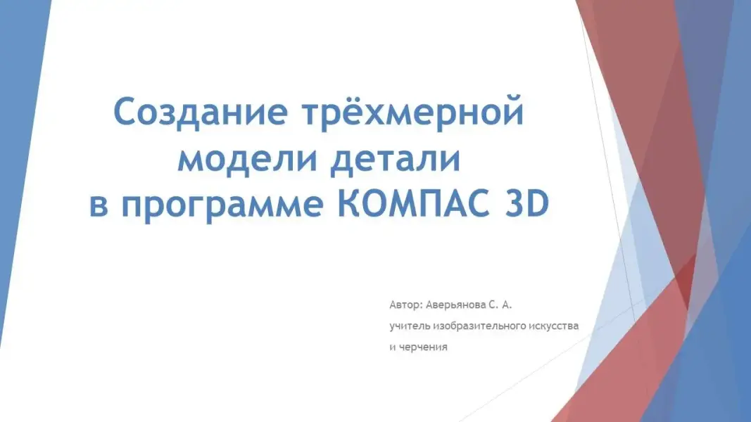 Учитель - Тема сегодняшнего занятия «Создание трёхмерной модели детали в программе КОМПАС 3D».