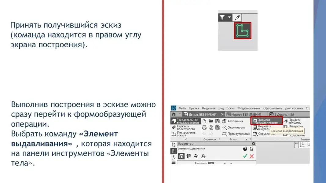 Учитель - Мы проанализировали геометрию детали «Корпус» и определились с последовательностью выполнения трёхмерной модели. Теперь, на основе этих данных, начинаем выполнение практической работы.