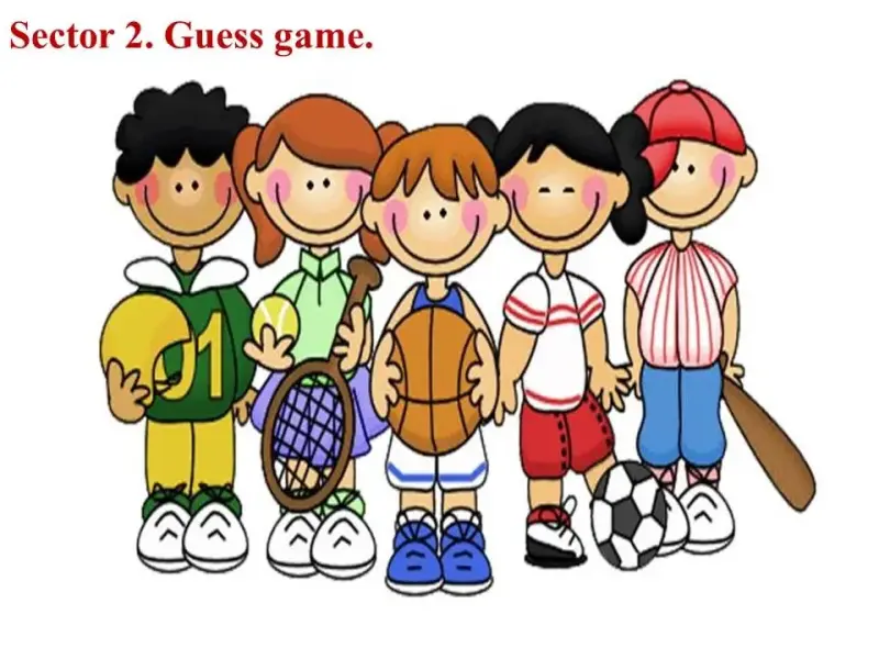 Teacher: Well, very good. And now «Guess game»! The rules of the competition are the following: each member of the team comes up to me and takes a card. There are 12 cards on the table. In each card is written a word denoting a kind of sport. The task for the person is to describe or show the chosen kind of sport to your team without words. You may use gestures and mime. If the team doesn't know the answer the second team has the right to answer. The team which can guess more kinds of sport will win.