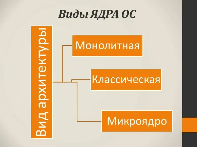 Рассмотрим три вида ядер - монолитные ядра, классическая структура и микроядра.