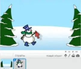 1. Добавим спрайт, например, снеговика. Пусть он бегает по лесу и поздравляет всех с новым годом!