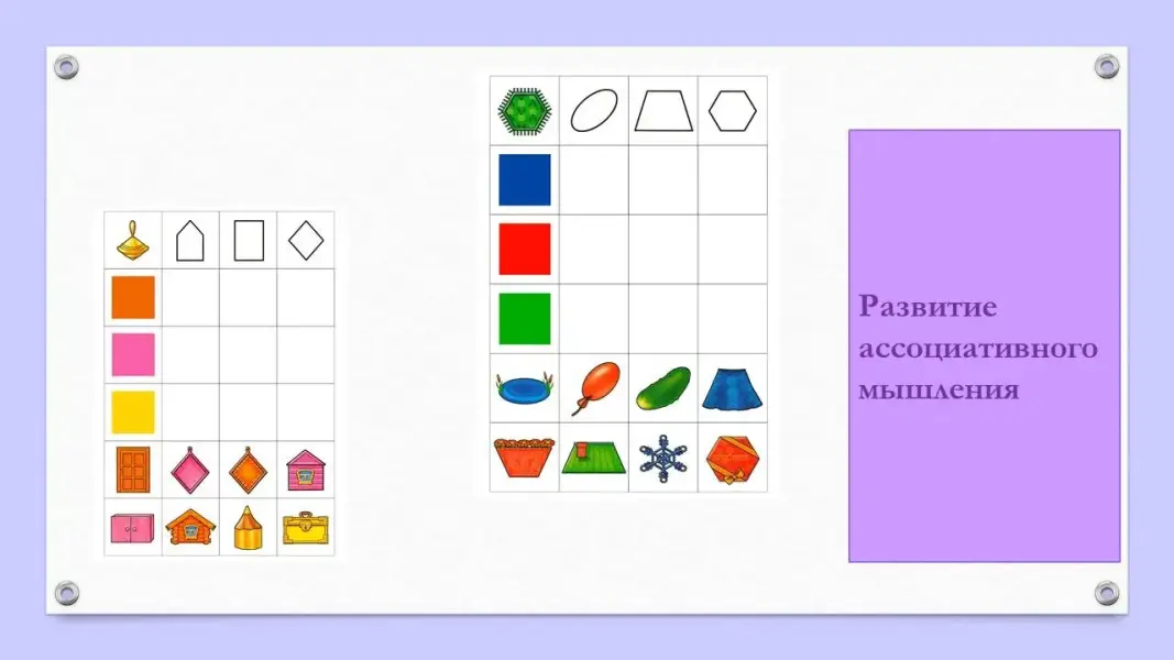 - Развитие абстрактного воображения, образной и логической памяти, ассоциативного мышления по аналогии.