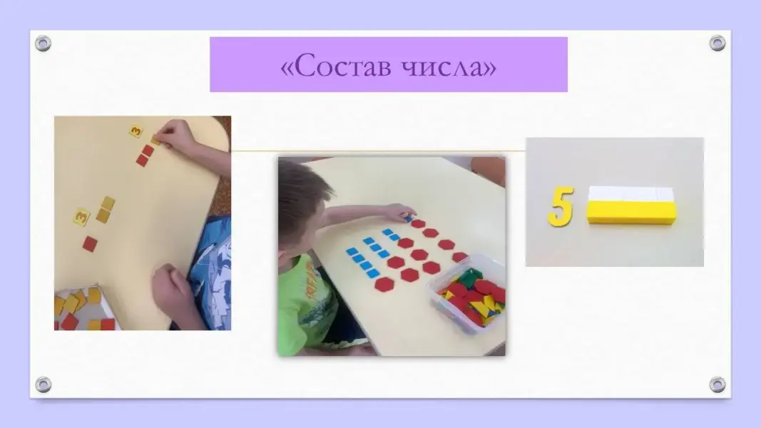 - игровые упражнения, основанные на применении дидактического материала - счётных палочек, палочек Кюизенера, логических фигур;