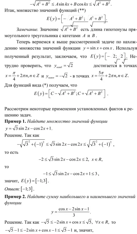 Множество значений функций вида у=Asinkx+Bcoskx+C