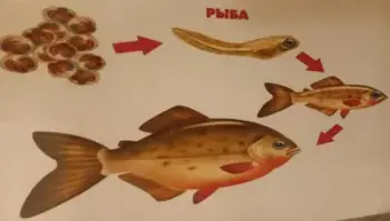 - Я расскажу вам, как рыбы появляются на свет и растут (картинка) Сначала мама - рыбка откладывает икринки. В каждой икринке растет зародыш. Потом из зародыша вырастает головастик. Посмотрите, какая у него большая голова, поэтому их так и называют. Потом из головастика вырастает малек. Из малька вырастает маленькая рыбка. Она растет и из нее вырастает большая рыба.