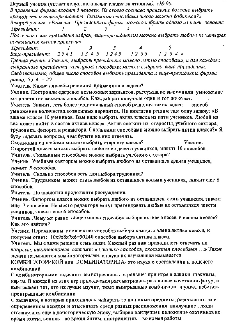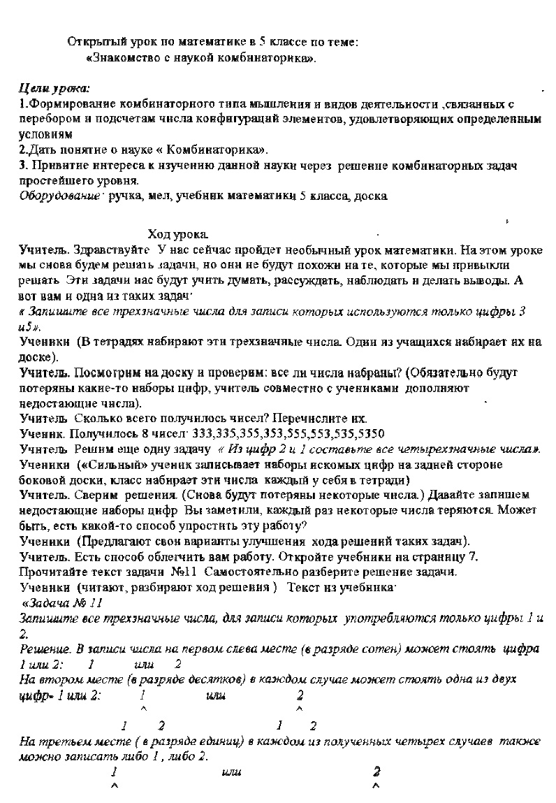 Открытый урок по математике в 5-м классе по теме: "Знакомство с наукой комбинаторика"