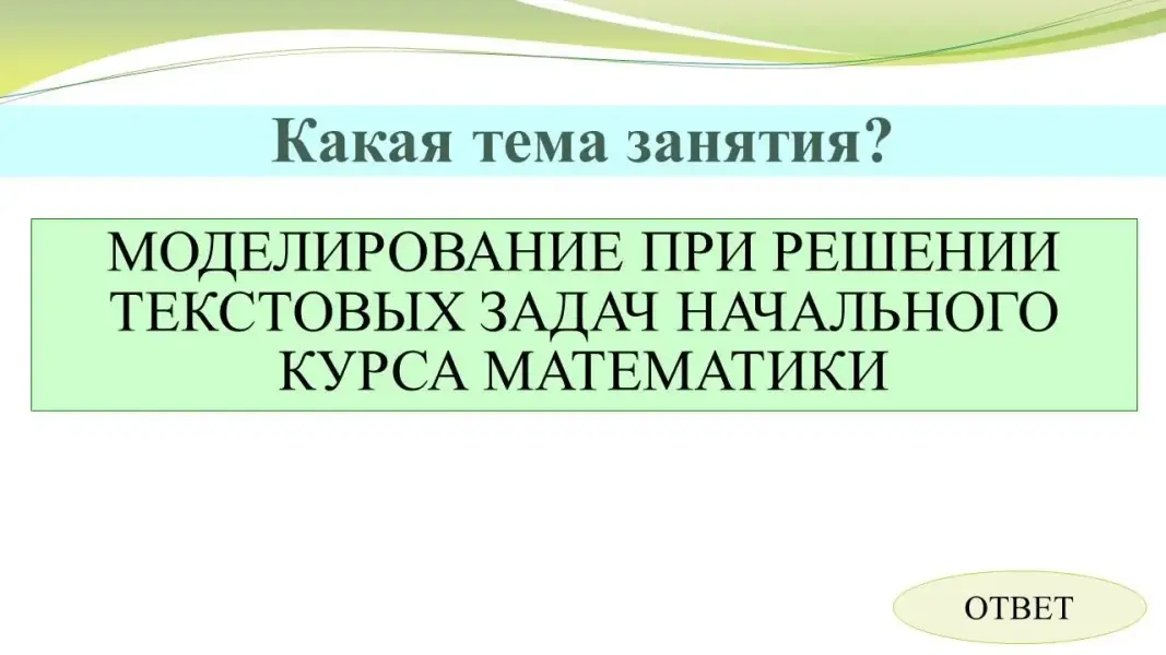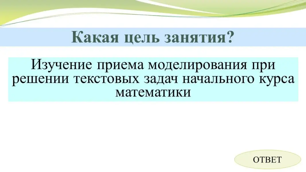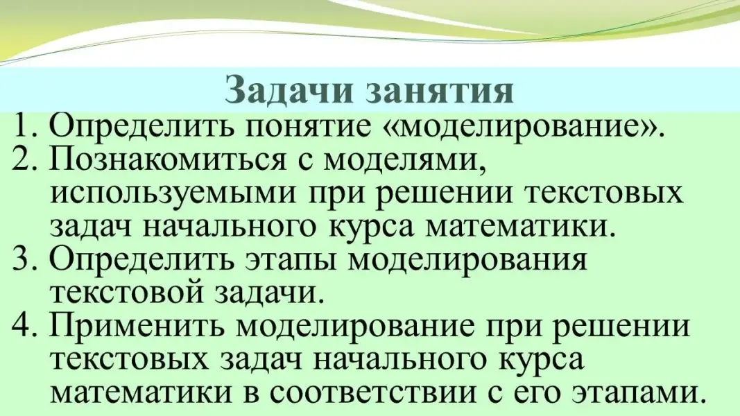 Предметным результатом дистанционного занятия «Моделирование при решении текстовых задач начального курса математики» является применение приема моделирования при решении текстовых