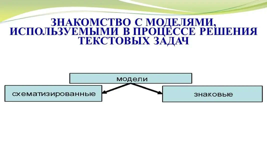 Перейдём ко второй задаче - Познакомимся с моделями, используемыми при решении текстовых задач начального курса математики |