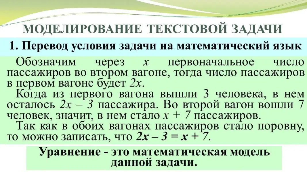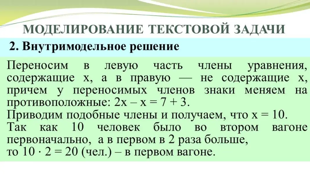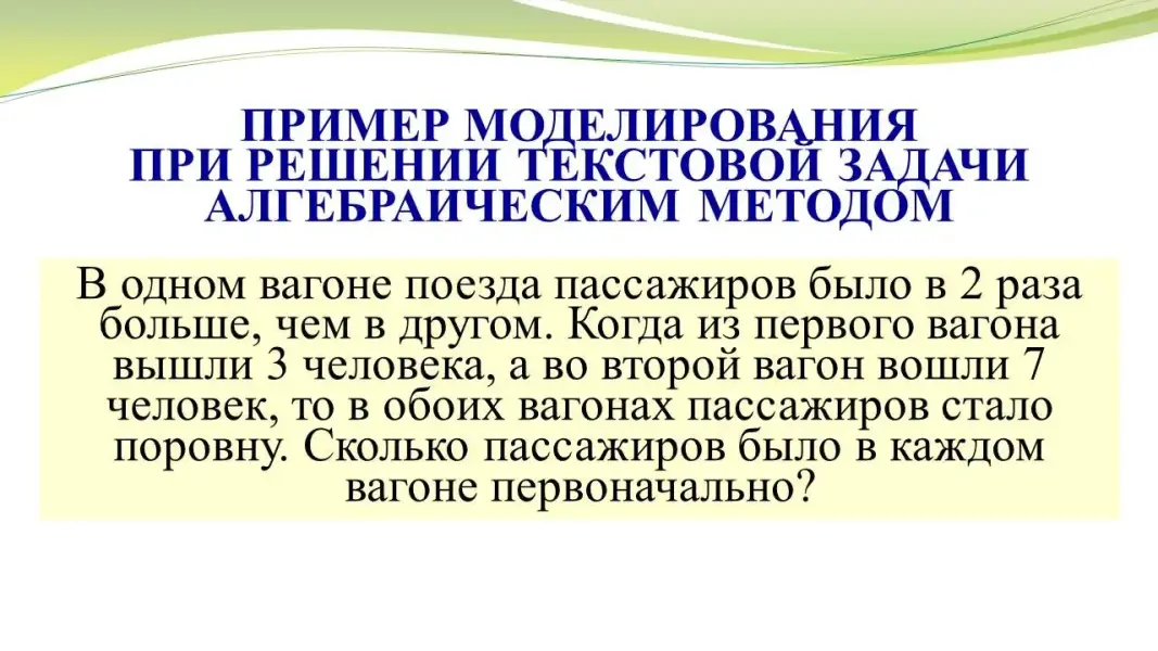 Рассмотрим пример моделирования при решении текстовой задачи алгебраическим методом.