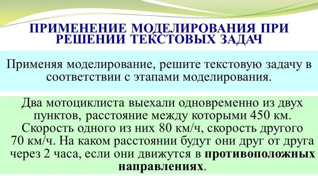 Итак, задание: Применяя моделирование, решите текстовую задачу в соответствии с этапами моделирования. |