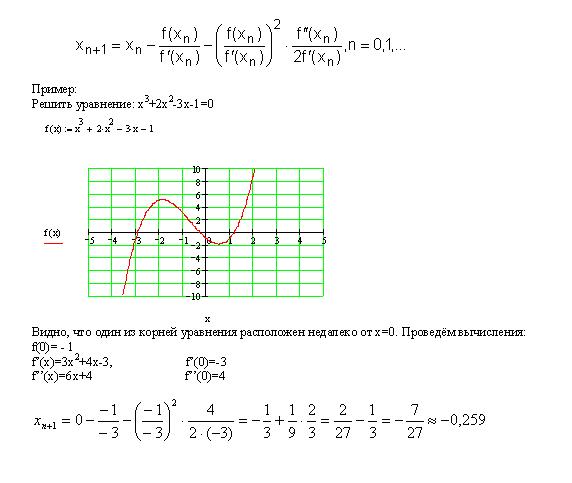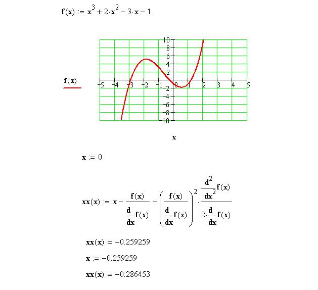 Если повторить вычисления по формуле, придав х только, что найденное значение, то получим более точное значение. Проведём эти вычисления с помощью Mathcad. <Рисунок7>