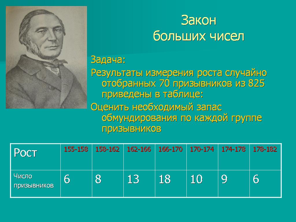 Одними из самых известных достижений Чебышева являются неравенство Чебышева и закон больших чисел Чебышева <Рисунок20>