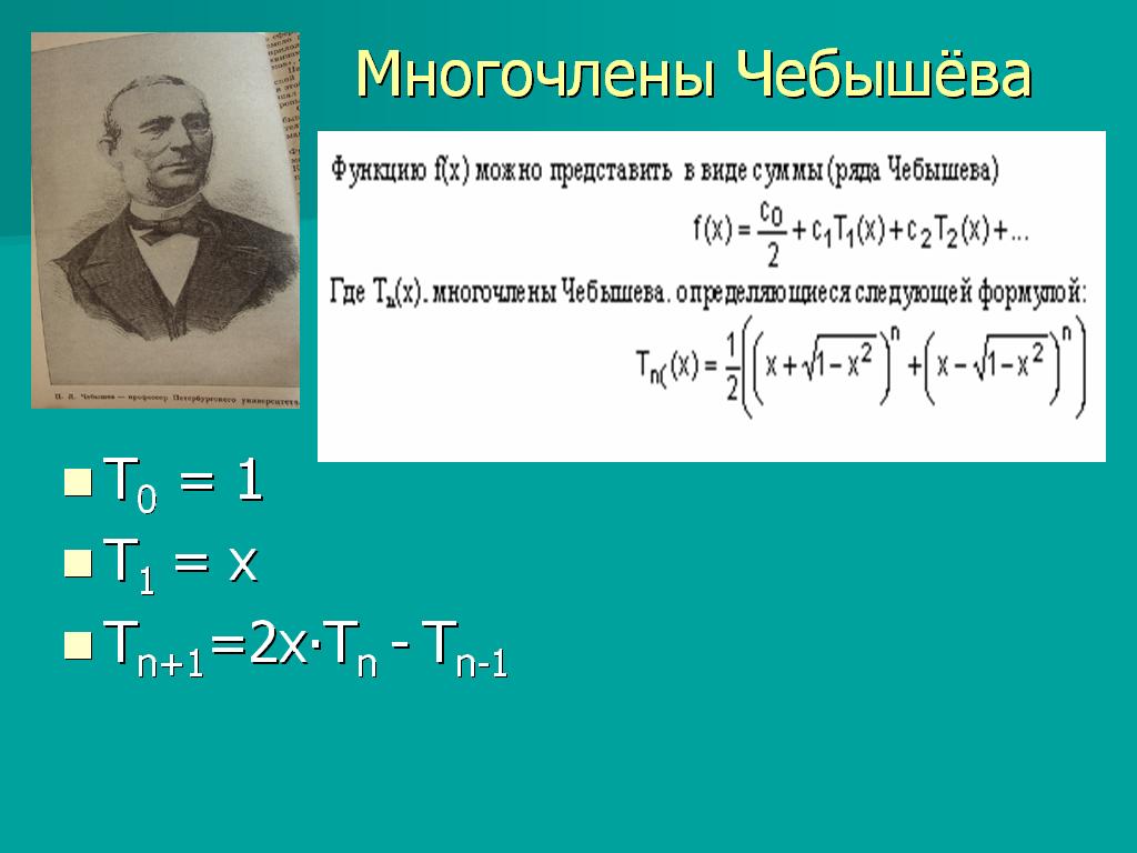Тn+1(х)=2x•Tn(x)-Tn-1(x) n=1,2,…