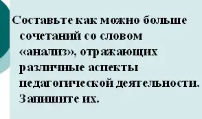 Составьте как можно больше сочетаний со словом «анализ», отражающих различные аспекты педагогической деятельности. Запишите их. (Ромашка)