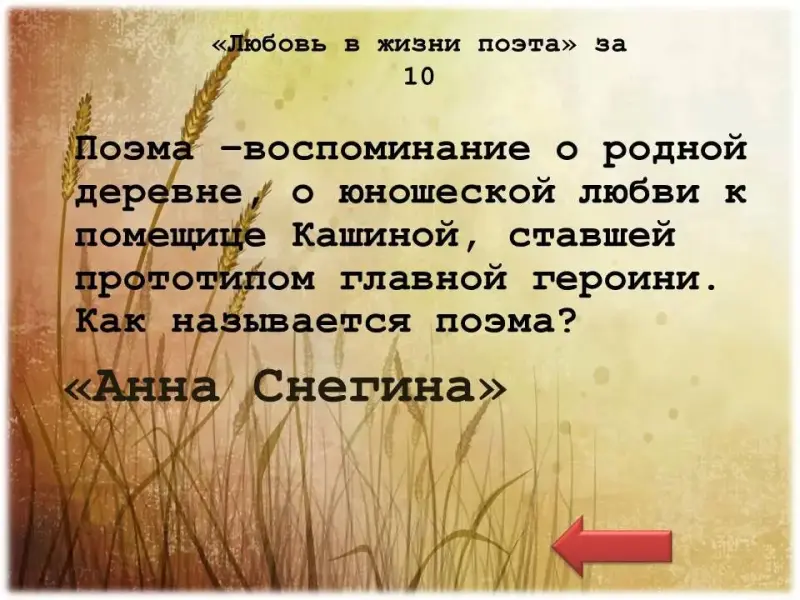 Своя игра "Есенин – сын земли раздольной"