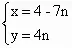 4x = 16 - 7•4n = 16 - 28n, x = 4 - 7n