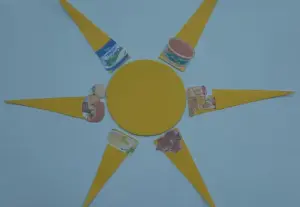 Воспитатель: Наше путешествие по стране «Витаминия» продолжается. Сейчас мы познакомимся с витамином D. Он необходим для наших костей, чтоб они были крепкими. Посмотрите, какое у меня солнышко, но что не хватает нашему солнышку? (лучей) А чтобы наш витамин засиял как солнце, мы будем прикреплять к нему лучики.