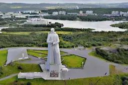 13. Великая Отечественная война началась на Кольском полуострове летом 1941 года. Врагу противостояла 14 армия, которая обороняла Мурманск на протяжении 3 лет. После войны к 30-летию разгрома немецко-фашистских войск в Заполярье 19 октября 1974 года состоялось открытие монумента Алеша, в честь памяти его защитникам. (Памятник был заложен 17 октября 1969 года, а к его возведению приступили в мае 1974 года.)