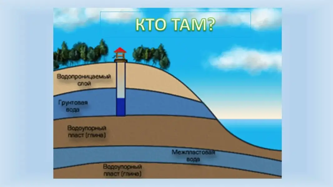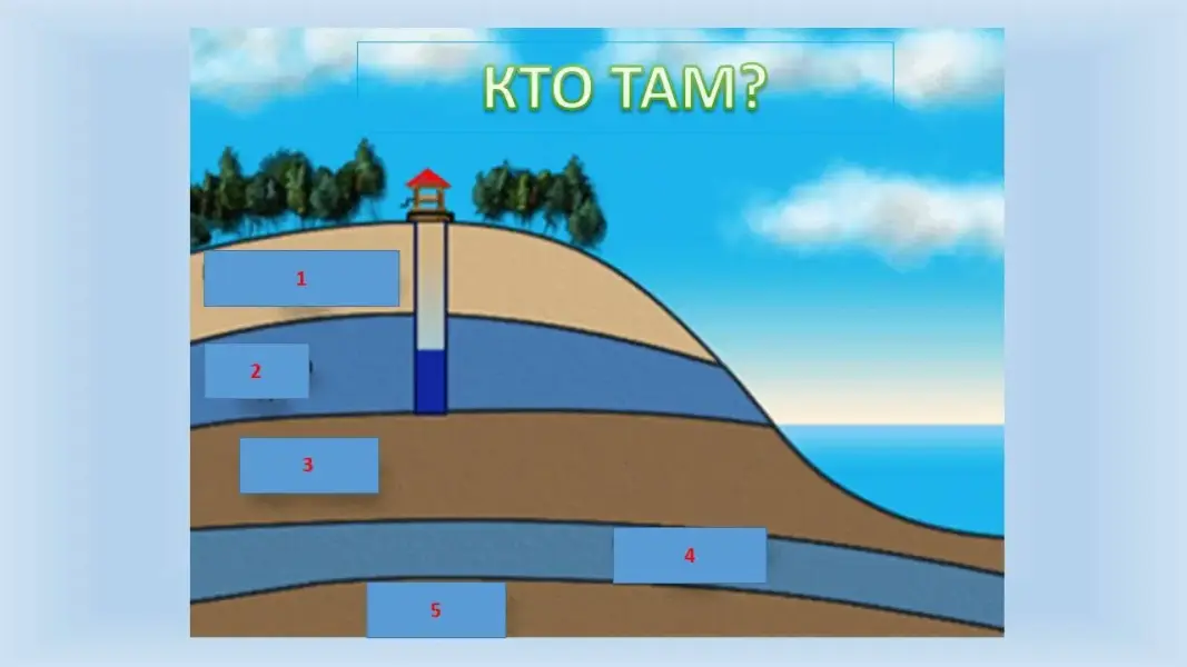 2. Грунтовые воды 3. Артезианские воды 4. Подземные воды 5. Источник 6. Минеральные воды 7. Водопроницаемые породы 8. Межпластовые воды 9. Водоносный слой |