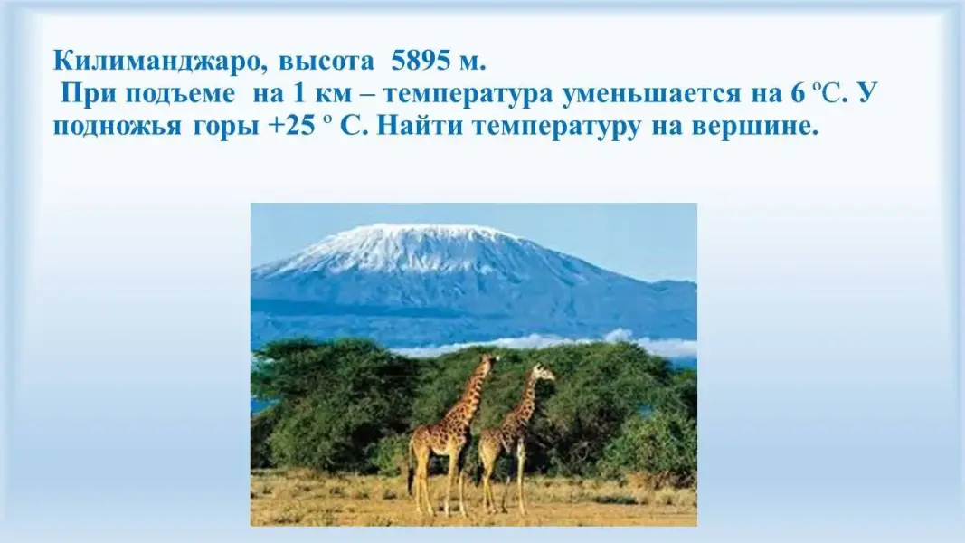 - Килиманджаро - +25°С, высота 25/6*100=4166м.