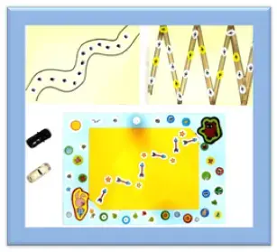 По дорожкам можно водить не только пальчиком, а также использовать маленький игрушечный паровозик, машинку, куколку, которые также хотят добраться по дорожке.