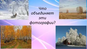 - Иллюстрациями к каким стихотворениям могут послужить фотографии? (1. «Белая берёза под моим окном..», 2. «Пороша», 3. «Нивы сжаты, рощи голы», 4. «Отговорила роща золотая»)